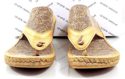 Andre Assous Annette Wedge Espadrille Thong Slide Sandal Toast Bronze Size 9
